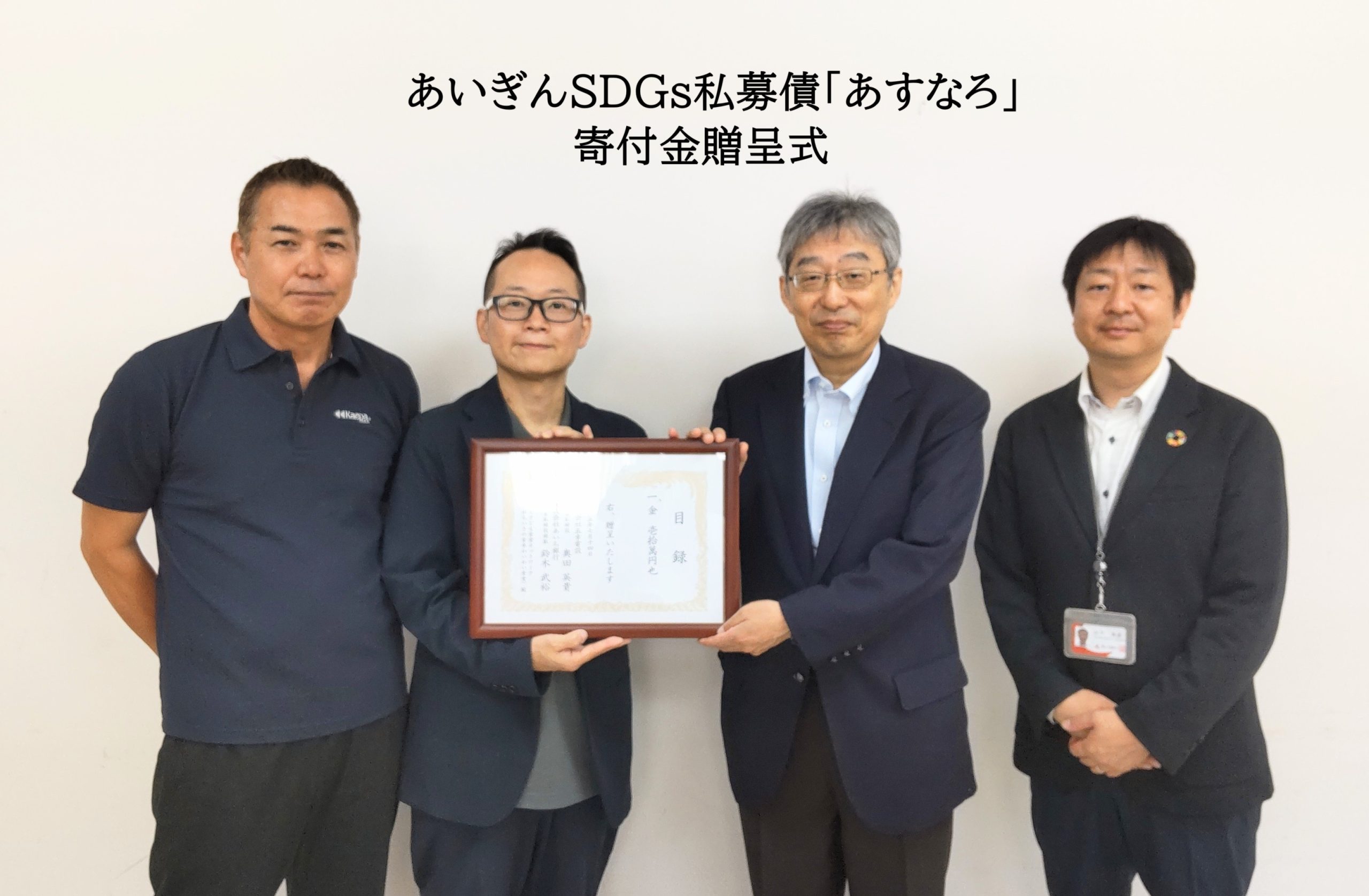 あいち銀行様の寄付型私募債「あすなろ」を通じて、子ども食堂の活動資金として寄付をいただきました。〈2025年6月4日〉